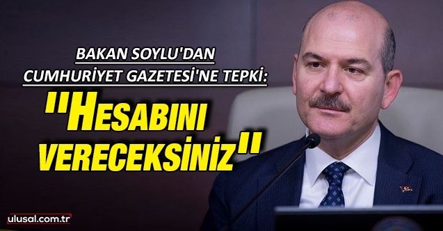 İçişleri Bakanı Süleyman Soylu sosyal medya hesabından Cumhuriyet Gazetesi'nin Sedat Peker ile ilgili haberlerine tepki gösterdi. Soylu, "Türkiye eski Türkiye değil. Hesabını hukuk önünde vereceksiniz" dedi. Bakan Soylu'nun açıklaması şu şekilde: