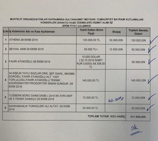 İstanbul, 29 Ekim Cumhuriyet Bayramı’mın coşkusunu Sultanahmet Meydanı’nda yaşadı. İstanbul Büyükşehir Belediyesi (İBB) tarafından hazırlanan konser alanını akşam saatlerinden itibaren doldurmaya başlayan binlerce vatandaş, ellerindeki Türk bayraklarıyla görsel şölen yaşattı. Peki İBB sanatçılara ne kadar ödedi? Sultanahmet'teki tarihi 29 Ekim kutlamasında, İBB tarafından sanatçılara vergiler dahil 517 bin TL ödendiği ortaya çıktı. İBB'nin geçmiş dönemde sponsor olduğu Kut'ül Amare dizisine 12.7 milyon TL ödediği ortaya çıkmıştı.