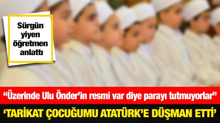 PARA VE ATATÜRK: Bizim okul bölgesinde etkili olan bir tarikat var. Bir kıraathane kiralamışlar. ‘Çocuğum buraya gitti, Atatürk’e düşman ettiler. Paranın üzerinde Atatürk’ün resmi var diye parayı tutamayacak hale geldi’ diyen veliler var. Bir veli 7 yaşındaki çocuğuna orada bulaşık yıkatıldığını söyledi. ‘Tarikat istemiyoruz’ demek Anayasa’yı savunmaktır. Ama beni sürdüler.