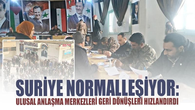 Suriye Hükümeti, savaş nedeniyle evlerini terk etmek zorunda kalan Suriyelilerin geri dönüşü, bölgede hayatın yeniden canlandırılması ve istikrarın tesisi için bazı bölgelerde Ulusal Anlaşma Merkezleri kurdu. Bu merkezlere başvuran Suriyelilere idari işler ve güvenlik konusunda yardım sağlanıyor, yasal yerleşim izinleri verilerek devletin imkanlarından faydalanmalarının önü açılıyor.