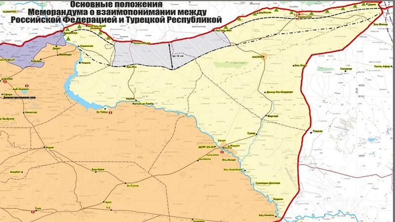 Rusya Savunma Bakanlığı, Türkiye'yle varılan mutabakat kapsamında Rus askeri polisinin Suriye'nin kuzeyinde devriye faaliyetleri yürüteceği bölgenin bir haritasını yayınladı.