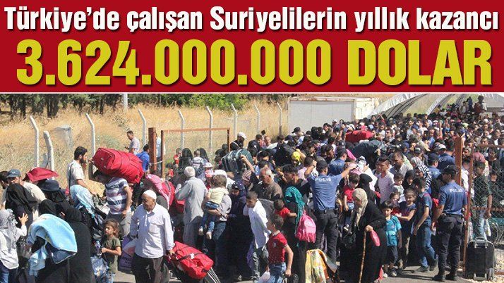 – Bugün Türkiye’de 800 bin1 milyon dolayında Suriyeli çalışırken, bu sayının iki yıl içinde 1.5 milyonu bulacağı öngörülüyor. AFAD ve Göç İdaresi Başkanlığı'nın verileriyle yapılan projeksiyonda, Türkiye’de çalışan Suriyeli sığınmacılara ödenen aylık/yevmiye tutarının toplamı 302 milyon doları buluyor. Suriyeli sığınmacıların Türkiye’deki yıllık kazancı 3 milyar 624 milyon dolar.