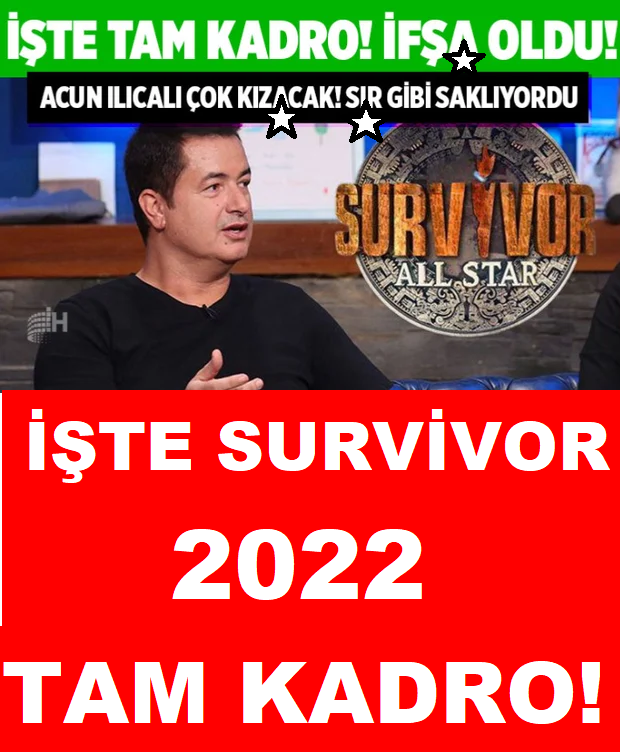 TV8'in reyting rekorları k-ıran ve en çok izlenen yarışması Survivor Türkiye yeni sezonda Survivor All Star formatıyla yeniden izleyici karşısına çıkacak. Survivor All Star 2022 kadrosu için bazı isimlerle görüşmeye başlayan Acun Ilıcalı'yı kızdıracak bir gelişme yaşandı zira Ilıcalı bu kez yarışma öncesi işi sıkı tutarak, eski izlenme oranlarını da yakalamak amacıyla Survivor All Star 2022 kadro listesini son ana kadar gizli tutacaktı ve tam kadroyla ilgili çok fazla bilgi sızdırılmamasını sağlamaya çalışıyordu. Ancak ünlü bir sosyal medya fenomeni bu gizemi bozdu. Gelecek sezon ekrana gelecek Survivor All Star 2022'nin tüm kadrosunu if-şa etti.