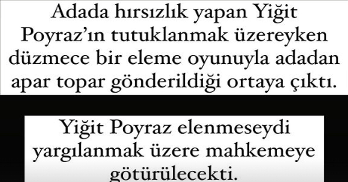 Son dönemlerin en kaos dolu sezonunun yaşandığı Survivor All Star'da, bu sene yaşananların eşi benzeri bulunmuyor. Yarışmacı Yiğit Poyraz'ın, çekim alanı dışında bulunan köylerden birine giderek gizlice bir yerlinin evine girmesi ve yemek çalması infial yaratmıştı. Dominik polisinin radarında olan yarışmacıyı ipin ucundan Acun Ilıcalı kurtarmıştı. Ama ortaya atılan bir iddia sosyal medyayı çalkaladı.