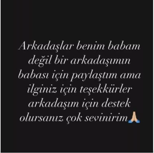 Paylaşıma konu olan kişinin yakın bir arkadaşının babası olduğunu aktaran Ogeday Girişken, takipçilerine teşekkür ederken arkadaşı için de destek istediğini ifade etti.