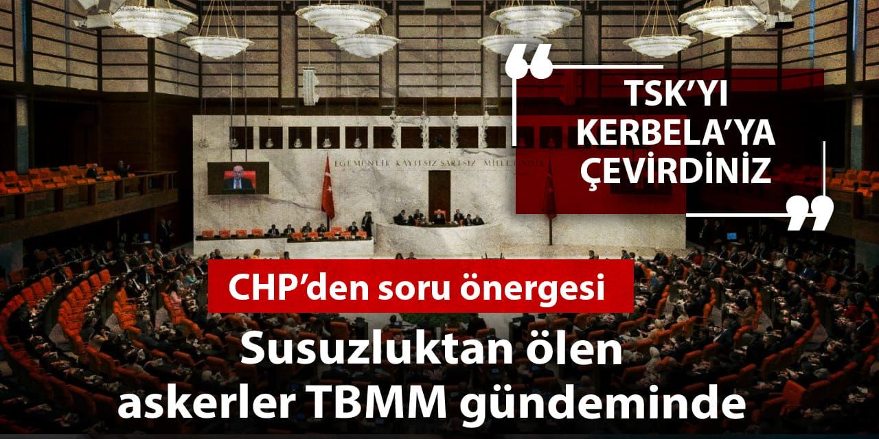 "TSK’yı Kerbelâ’ya çevirdiniz. Bu çağda devlete emanet edilen vatan evlatları susuzluktan ölür mü? Birlikte içme suyunun yetersiz olduğu, askerlerin para ile kantinden su satın almak zorunda kaldığı doğru mu? Genel Başkanımız Sayın Özgür Özel konuyla ilgili yaptığı ilk açıklamada, TBMM'de bir komisyon kurularak, 'zaafiyetin ve ihmalin' kaynağının tespit edilmesi çağrısında bulunmuştur. Daha birkaç hafta önce ihmaller zinciri sonucu şehit verdiğimiz 12 askerimizin acısı bu kadar tazeyken, yaşanan bu elim olay TSK’nın bu hale düşürülmesinin sebeplerinin ve çözüm önerilenin bulunması için bir çalışma başlatılmasını zorunlu kılmaktadır."