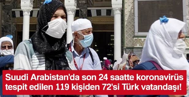 Suudi Arabistan Sağlık Bakanı Muhammed Abdülali, son testlerde pozitif çıkan 119 kişiden 72’sinin Mekke’de karantina altında tutulan Türk vatandaşları olduğunu açıkladı. Basın toplantısında konuşan Abdülali, bu kişilerin virüsü enfekte olan bir Türk’le temastan sonra kaptığını söyledi.