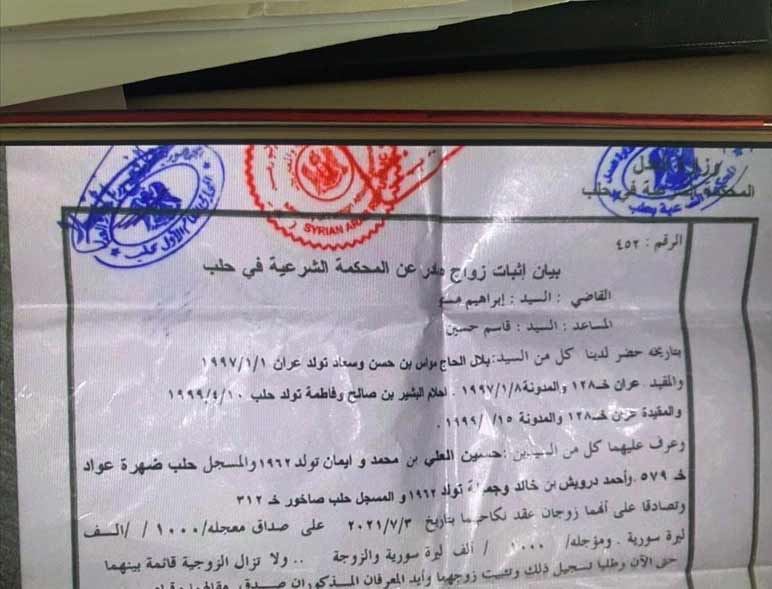 Beyoğlu İstiklal Caddesi'ne patlayıcı bırakan Suriye uyruklu terörist Ahlam Al Bashir ile Suriye’den “karıkoca” kılığında beraber geldikleri firari PKK/YPG mensubu Bilal Hassan’la yaptıkları sahte evlilik belgesi ortaya çıktı. Arapça yazılı ve sahte mühürlü belgenin asılsız olduğu anlaşıldı.