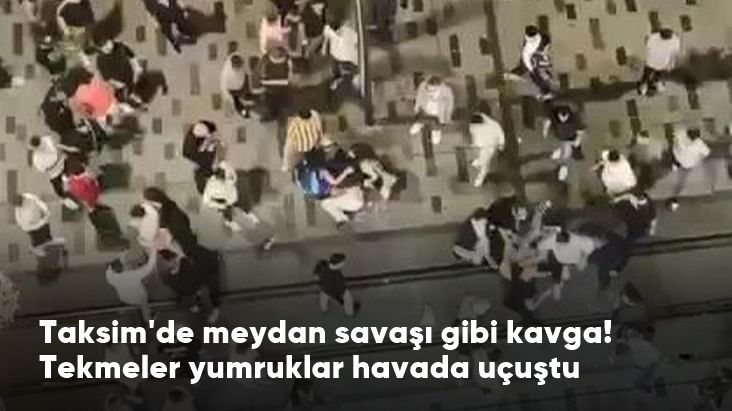 Taksim'de meydan muharebesi gibi kavga! Tekmeler yumruklar havada uçtu