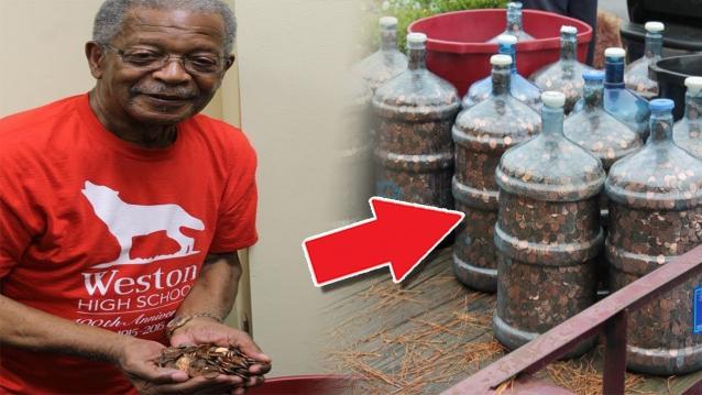 Bu Adam Bozuk Paralarını Tam 45 Yıl Boyunca Biriktirdi. Onları Yatırma Vakti Geldiğinde Şaşkınlıktan Küçük Dilini Yutuyordu! Banka Ziyareti Louisiana’daki Rustin şehrinde bulunan Rustin Origin Bank’in çalışanları, Otha Anders’ın para yatırmak için bankaya geldiği günü asla unutamayacaklar. Neden mi? Çünkü Anders’ın yaptığı her zamanki gibi bir para yatırma değildi. Parasının tamamını peniler (1 sent) halinde yatırıyordu. Çok fazla peni. Anders bankaya o kadar çok peni yatırıyordu ki paranın bankaya kadar kamyonet ile getirilmesi ve içeriye bir el arabası ile taşınması gerekmişti. Yanında kendisine yardımcı olacak beş kişi bile getirmişti. 15 Damacana Dolusu Fotoğraftan da görebileceğiniz gibi bozuk paralar su damacanalarına konmuştu. Tam olarak 15 damacana dolusu! Her biri on dokuz litrelik damacanalar ağızlarına kadar peniler ile doluydular. Patlayacak gibi duruyorlardı! Anders’ın bu peni yığınını nasıl boşalttığını ve saatler süren sayımın sonucunda bu meteliklerin toplam ne kadar ettiğini öğrenmek için okumaya devam edin… Biz şok olduk!