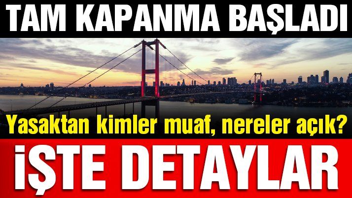 17 Mayıs Pazartesi saat 05.00'e kadar sürecek tam kapanma, saat 19.00'da başladı. Tam kapanma sürecinde hangi iş yerlerinin açık olduğu ve kimlerin yasaktan muaf olduğu açıklandı.