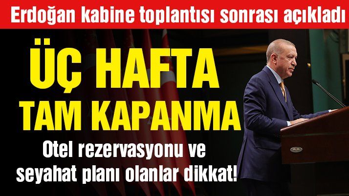 * Bayram sonrasına kadar sürecek yeni tedbirlerimiz şu şekilde olacak: 29 Nisan 2021 yani Perşembe akşamı saat 19:00'dan başlayıp 17 Mayıs 2021 Pazartesi sabah 05:00’e kadar sürecek şekilde tam kapanmaya geçiyoruz.