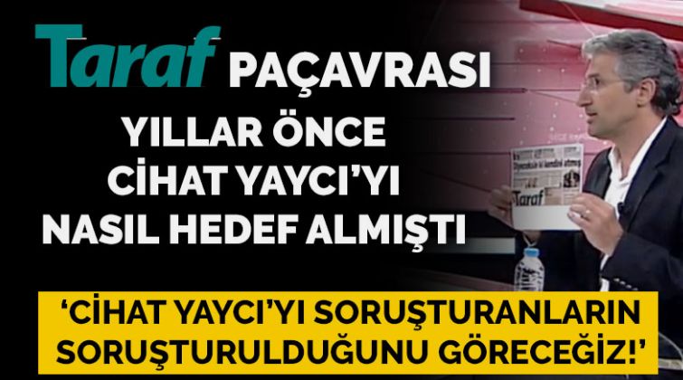…Cihat Yaycı o dönem FETÖ’cülerin ciddi hedefi. Siz somut örneğini vereceğim.Taraf gazetesinde sürmanşet. Burada “büyük yazar” Ahmet Altan. Onların çıkardığı paçavra Taraf gazetesi. Birçok yurttaş Taraf diye bir gazete çıktığını bilmez. Burada yazanların çoğu bugün “itibarlı muhalif”. Cihat Yaycı da linç ettikleri insanlardan birisi. Bir gemide bir astsubay ölüyor. Orada Cihat Yaycı’nın personele intihar ettiğine dair ifade vermeleri baskısı yaptığı iddia edildi. Bunlardan da yargılandı. Taraf bir adamı boşuna manşet yapmaz. Bu gazete operasyon gazetesiydi. Orada gazetecilik yapanların listesini çıkaracağım o ahlaksızların. Bu manşetler atılırken orada operasyon çekiyorlardı. Cihat Yaycı’nın kabahati tutuklanmamış olması mı…