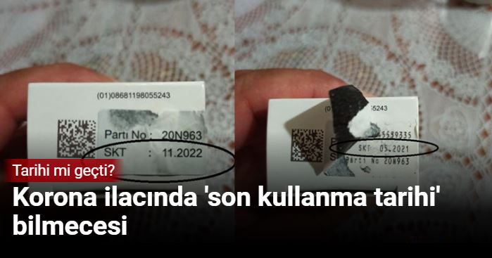 Samsun’da koronavirüs tedavisi gören bir hasta, kullandığı ilaç üzerinde yer alan etiketi kaldırdığında tarihinin geçmiş olduğunu fark etti. İlacın üzerine yapıştırılan son kullanma tarihi 11 Kasım 2022 iken altında çıkan son kullanma tarihinin ise Mayıs 2021 olduğunu görünce şaşkına döndü.