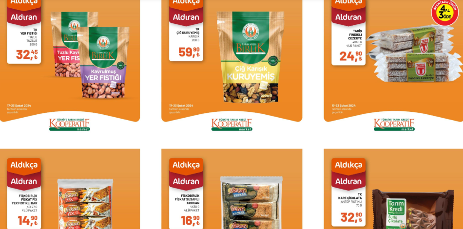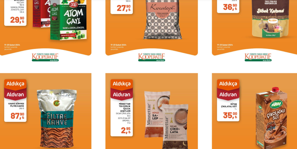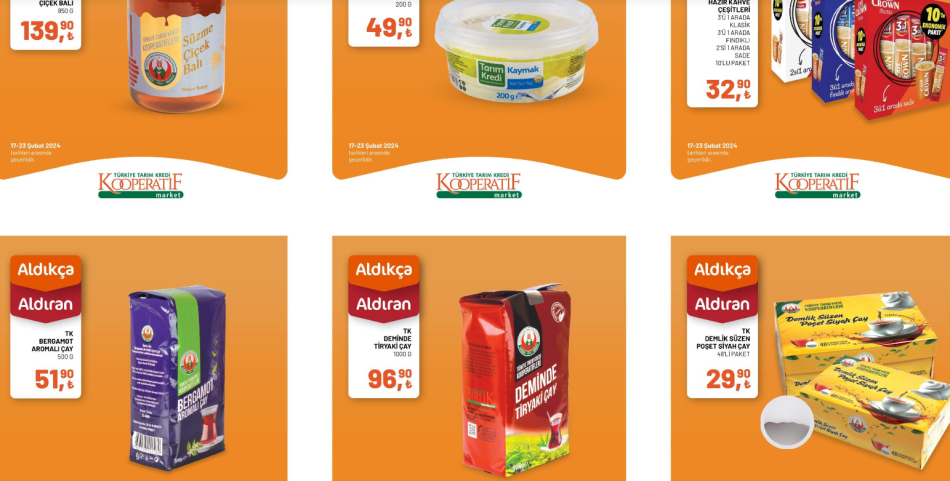 Tarım Kredi Kooperatif Marketleri'nde şubat ayı güncel indirimli ürünler listesi 17 Şubat Cumartesi açıklandı. 24 Şubat'a kadar devam edecek kampanyada et, süt, yoğurt, yumurta, kuruyemiş, çay ve temizlik malzemeleri gibi birçok temel ihtiyaç ürünü avantajlı fiyatlarla alıcılarına ulaştırılacak. İşte Tarım Kredi Marketleri indirim kataloğu...