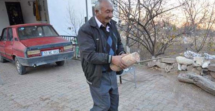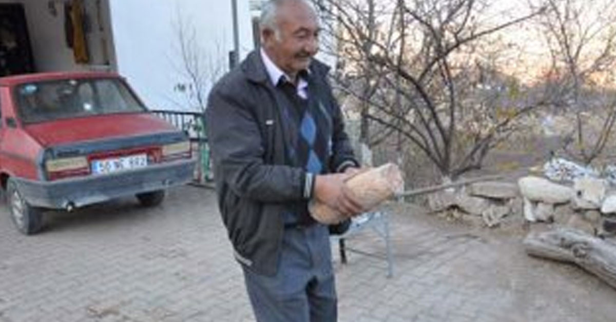 Nevşehir'de, traktörle tarlasını sürerken toprak yüzeyine çıkan taşlaşmış parçaları bir araya getiren Ali Kale, Nevşehir müze müdürlüğüne bilgi verdi.