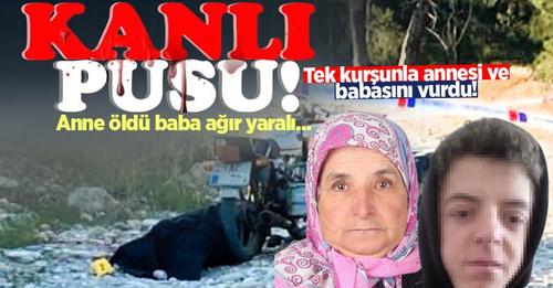 Tarladan dönen anne babasına pusu kuran oğul, tek kurşunla hem annesini hem de babasını vurdu. Annenin öldüğü, babanın ise entübe edildiği olayın faili olan ve cinayet ihbarında bulunan evlat, “Beni dövüyordu. Korkutmak için ateş ettim. Babam beri arayınca gidip yardım ettim, ambulans çağırdım" dedi.,,,,,,,,,,,,,,,,,,,,,,,,,,,