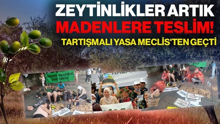 Türkiye Büyük Millet Meclisi’nde (TBMM) görüşmeleri süren enerji ve maden alanlarına yönelik düzenlemeler içeren, kamuoyunda "Zeytinlik" yasası olarak bilinen Bazı Kanunlarda Değişiklik Yapılmasına Dair Kanun Teklifi, TBMM Genel Kurulu’nda kabul edildi.