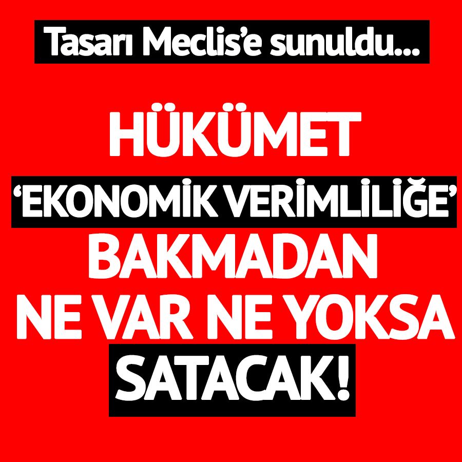 Hükümet, 24 yıldır ekonomide verimliliğin artırılması ve kamu giderlerinin azaltılması amacıyla uygulanmaya çalışılan özelleştirmeyi, ‘Mirasyedi' benzeri bir mantıkla gelir hedefine çevirdi. Meclis'e sunulan tasarının yasalaşması halinde ‘Ekonomik verimliliğine bakılmadan' her şey satılıp, paraya dönüştürülecek.