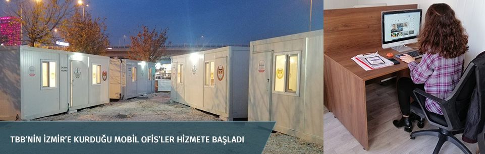 Türkiye Barolar Birliği’nin, İzmir’i vuran deprem felaketi nedeniyle büroları ve ofisleri zarar gören avukatların acil ihtiyaçlarının karşılanması için kurduğu “Mobil Ofis” elektrik alt yapı bağlantıları da yapılarak hizmet vermeye başladı.