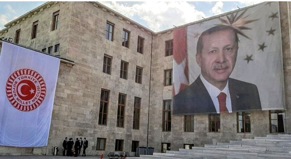 Ancak tören öncesi Meclis'e gelenlerin karşılaştığı manzara tepki çekti. Meclis'e gelenler, Şeref Kapısında Tayyip Erdoğan'ın dev posteriyle karşılaştı.