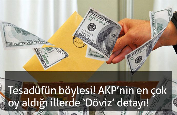 Döviz mevduatlarının toplam tasarruf mevduatlarına oranı en yüksek olan 10 ilk istatistiğinde çıkan şehirlerin AKP’nin en çok oy aldığı iller olması göze çarptı
