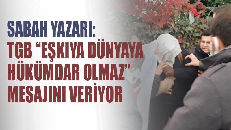 Sabah yazarı Hilal Kaplan bugünkü köşesinde, TGB'nin Amerikan askerinin başına çuval geçirme eyleminden bahsetti. Kaplan, "Bazı fondaşlar ise TGB'ye "şehir eşkıyası" diyen Pentagon'un dilinden konuşuyorlar. TGB ise bir nevi "eşkıya dünyaya hükümdar olmaz" mesajını veriyor." dedi.
