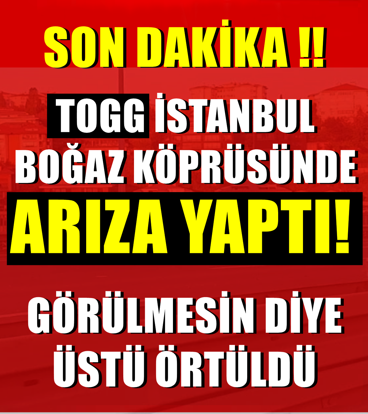 TOGG Boğaz Köprüsü'nde arıza yaptı. Görülmesin diye üstü örtüldü. Ayrıntılar Haberin Detayındadır… HABERİN DEVAMI İÇİN GÖRSELE DO/KUNUNUZ..