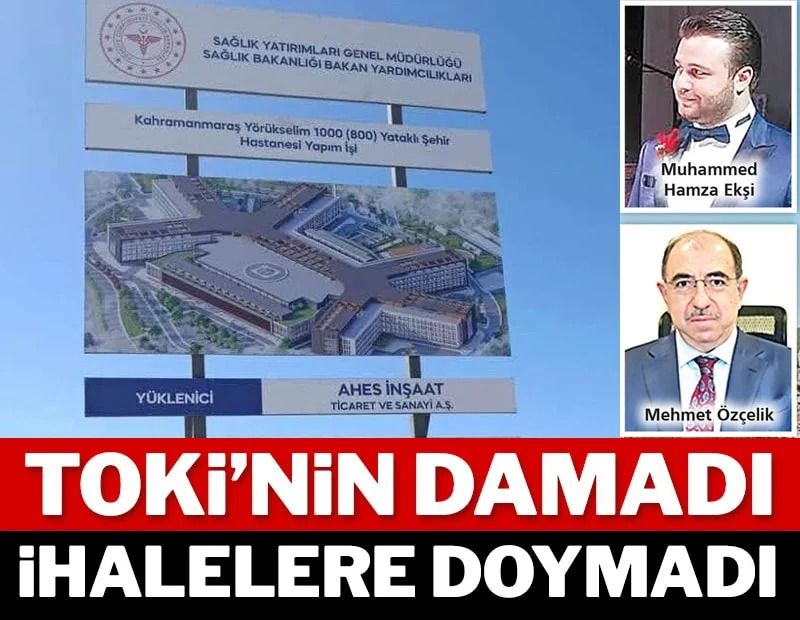 AHES İnşaat şirketi, adını deprem konutlarıyla ve ardından hastane ihaleleriyle duyurdu. Firmanın kurucusu Mücahid Hamza Ekşi, TOKİ eski Başkan Yardımcısı ve AKP’li Fatih Belediye Başkan Yardımcısı Mehmet Özçelik’in kızı Büşra Özçelik ile 2017 yılında dünya evine girdi. O günden sonra ihalelerde talih hep Ekşi’nin yanında oldu. Ekşi’nin şirketi AHES İnşaat, 6 Şubat depremlerinden bu yana kamudan 30 milyar TL’nin üzerinde ihale aldı. Daha önce Kahramanmaraş Stadyumu projesini 1.6 milyar TL’ye alan şirket, geçtiğimiz haftalarda Antalya’daki sit alanını da almıştı. Antalya Gazipaşa’daki Koru Sahili, doğal sit alanı olmasına rağmen, Kültür ve Turizm Bakanlığı’nca Ekşi’nin AHES Şirketine 49 yıllığına tahsis edilmişti.