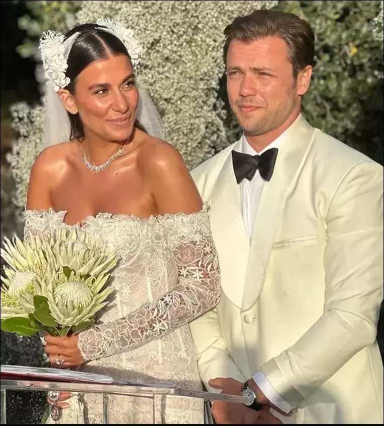 Ünlü çift, Haziran ayında Çeşme'de dünyaevine girdi. Zeynep Mayruk, dantel detaylı straplez model bir gelinlik tercih etmiş, Sarıtaş ise beyaz bir smokin giymişti.