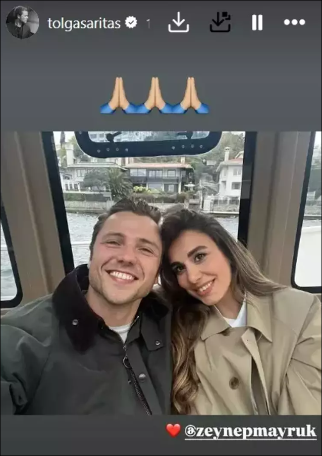 Sarıtaş, çıkan haberler sonrası Instagram'dan eşi ile birlikte verdiği bir pozu 'Şükür' emojisi ile paylaştı.