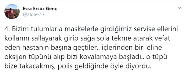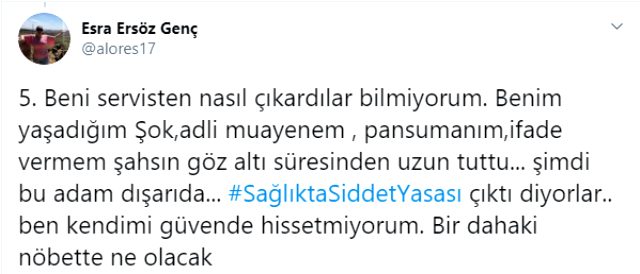 Türkiye'deki koronavirüs salgını sürecinde TBMM'den sağlıkta şiddetin önlenmesine dair yasa da Meclis'ten geçti. Ancak bu gelişme bile hekimlere şiddet uygulayanları durduramıyor.Trabzon Karadeniz Teknik Üniversitesi Farabi Hastanesi'nde meydana gelen olay da bu cinsten. Hastanenin acil bölümünde görev yapan Doktor Esra Ersöz Genç yaşadıklarını Twitter hesabı üzerinden anlattı.Genç, şunları yazdı: