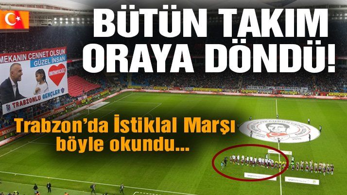 Kale arkası tribününde açılan ‘Mekanın cennet olsun güzel insan. Unutmayacağız’ yazılı pankarta dönen bütün Trabzonsporlu futbolcular İstiklal Marşı’nı da bu şekilde okudu.