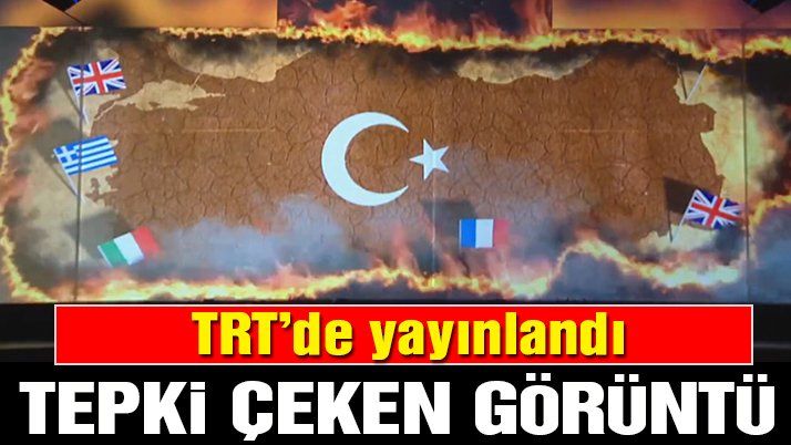 Alevler ayyıldızlı Anadolu'yu yutana kadar devam ederken haritanın etrafına yerleştirilen İngiltere, Yunanistan, İtalya, Fransa ve Ermenistan bayraklarının alevlerden etkilenmediği görüldü.