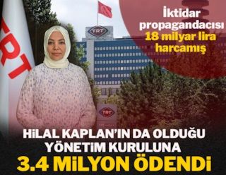 Başkan Ahmet Albayrak, Başkan vekili Zahid Sobacı, “Pelikancılar” olarak nitelendirilen ekipten Hilal Kaplan, Çalışma Bakanı Vedat Bilgin’in oğlu Oğuzhan Bilgin, AKP AR-GE Başkan Yardımcısı Atakan Yılmaz gibi isimlerin olduğu 9 kişilik TRT yönetim kuruluna ödenen tutar da 2023’te 3 milyon 373 bin TL’ydi.
