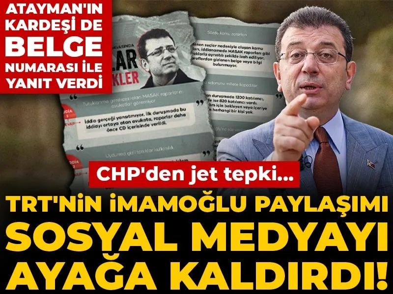 TRT'nin verdiği 'yanıtlara' da İBB tutuklularının yakınları tepki gösterdi. İBB Medya A.Ş. Genel Müdürü İpek Elif Atayman'ın kardeşi Barış Atayman, TRT'nin iddia ettiği gibi MASAK raporlarının kendilerine verilmediğini tek tek belge numaraları ile yazdı. Atayman şunları ifade etti:
