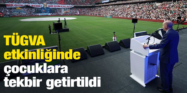 Cumhurbaşkanı Erdoğan'ın 'onur konuğu' olarak katıldığı etkinlikte küçük çocuklar sahneye çıkartılarak dini ritüeller yaptırıldı.