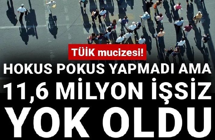 "Son bir yılda 756.000 kişi umutsuzluktan iş gücü piyasasından kaçmış. Çalışan sayısının son bir yılda zırnık artmadığı, aksine düştüğü bir yerde işsizlik oranının düşmesi büyük bir TÜİK mucizesidir."