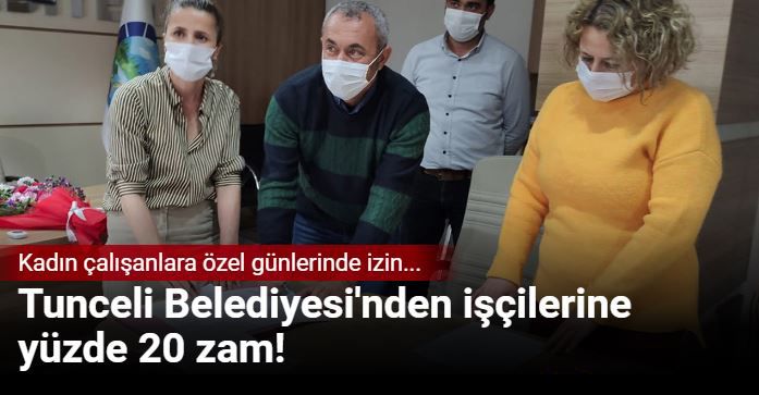 Tunceli Belediyesi Mart ayı itibari ile işçilere net 20 zam ve bazı sosyal yardımlarda bulunacak. Yapılan anlaşmada kadın işçilere pozitif ayrımcılık da uygulanacak.