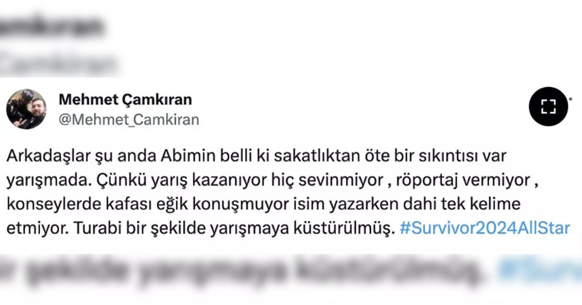 Sosyal medya hesabından konuyla ilgili bir paylaşım yapan Turabi'nin kardeşi Mehmet Çamkıran, "Abimin belli ki sakatlıktan öte bir sıkıntısı var yarışmada" diye konuştu.