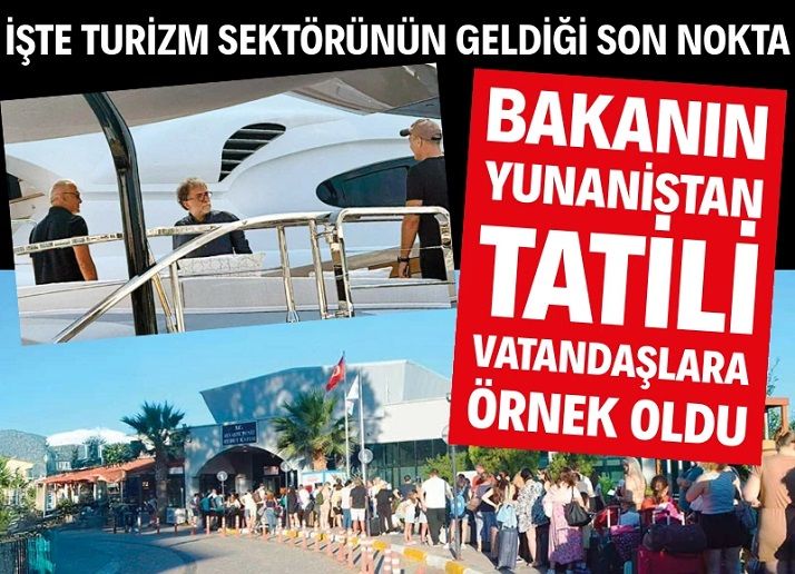 TÜRKİYE’de turizmde kriz zilleri çalarken, Kültür ve Turizm Bakanı Mehmet Nuri Ersoy’un Yunanistan’da içinde jakuzi, havuz, katlanır terasın da olduğu ultra lüks teknede tatil yapması tepki çekmeye devam ediyor.