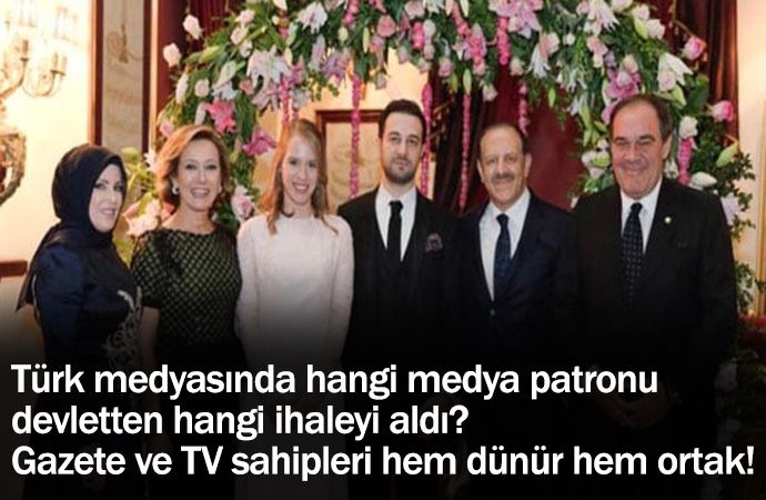 Türk medyasında hangi medya patronu devletten hangi ihaleyi aldı? Gazete ve TV sahipleri hem dünür hem ortak… AKP’nin 14 yıllık iktidarı birçok alandaki talanı gözler önüne sererken bu dönemde ortaya çıkan ‘yandaş sermaye’nin yükselişi ise dikkatlerden kaçmıyor. Bu gruplara devletin tüm imkanları seferber edilerek ‘ihale fırsatları’ sunuluyor.