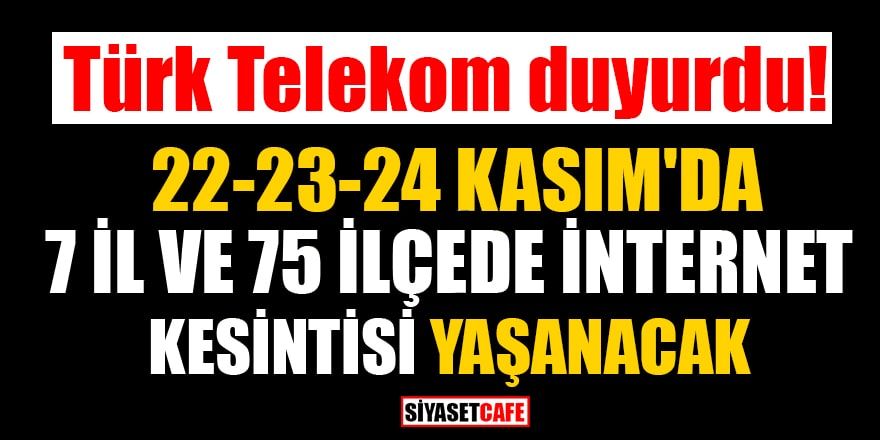 Türk Telekom, 7 il ve 75 ilçede 3 gün süreyle internet hizmetinde kesintilere gideceğini duyurdu.