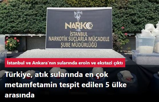 Avrupa Birliği, Norveç ve Türkiye'yi kapsayan rapora göre, Türkiye'de metamfetamin kullanımı en fazla İstanbul ve Adana'da tespit edildi. İstanbul'un atık sularında esrar, ketamin ve amfetamine, İstanbul ve Ankara'nın sularında ise eroin ve ekstaziye rastlandı.