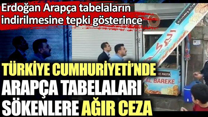 Arapça tabelaların kaldırılmasına Cumhurbaşkanı Erdoğan’ın tepki göstermesinin ardından Adalet Bakanlığı’nın belediyelere Arapça tabelaları kaldırdı diye daha büyük cezalar kesmek için harekete geçtiği iddia edildi.