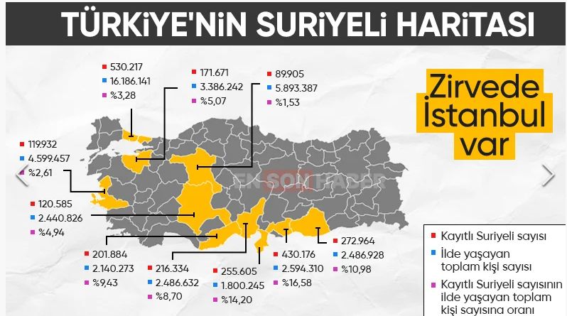 Kayıtlı Suriyeli nüfusunun İstanbul’da yaşayan toplam kişi sayısına oranı ise yüzde 3,28.
