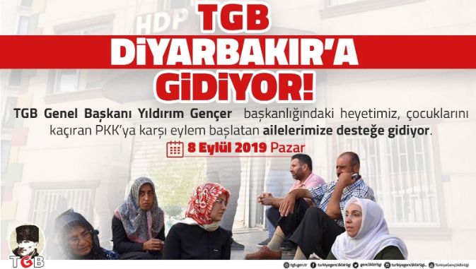 Türkiye Gençlik Birliği, 8 Eylül Pazar günü Diyarbakır'da HDP il binası önünde çocukları PKK tarafından dağa kaçırılan oğulları için nöbet tutan annelerimizi ziyaret edecek.