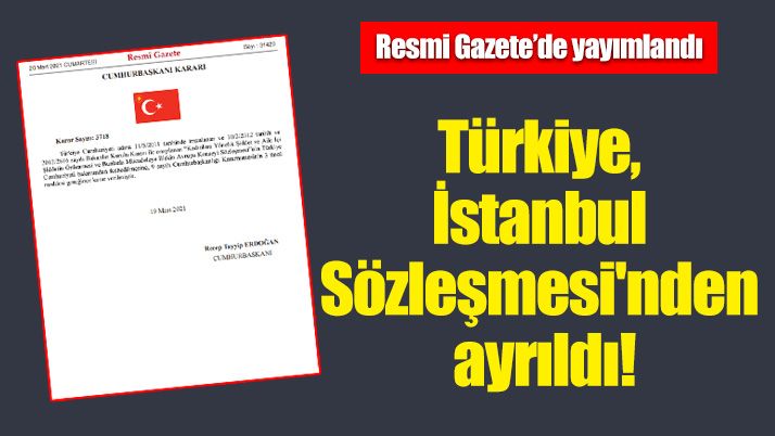 Resmi Gazete'de yayımlanan AKP Genel Başkanı ve Cumhurbaşkanı Recep Tayyip Erdoğan'ın imzaladığı kararnamede, "3718 sayılı kararda "Türkiye Cumhuriyeti adına 11/5/2011 tarihinde imzalanan ve 10/2/2012 tarihli ve 2012/2816 sayılı Bakanlar Kurulu Kararı ile onaylanan "Kadınlara Yönelik Şiddet ve Aile İçi Şiddetin Önlenmesi ve Bunlarla Mücadeleye İlişkin Avrupa Konseyi Sözleşmesi"nin Türkiye Cumhuriyeti bakımından feshedilmesine, 9 sayılı Cumhurbaşkanlığı Kararnamesi'nin 3 üncü maddesi gereğince karar verilmiştir." ifadeleri yer aldı.
