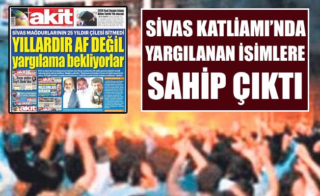 Akit gazetesi bugünkü manşetinde, Sivas Katliamı'nda yargılanan isimlere sahip çıktı.