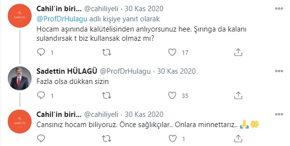 CHP eski Milletvekili Hüsnü Bozkurt, Türkiye'ye 25 bin doz Alman Biontech aşısının getirildiğini ancak aşıların nerede olduğunun bilinmediğini iddia etmişti. Kocaeli Üniversitesi Rektörü Saadettin Hülagü, Kasım ayında Biontech aşısının 2’nci dozunu da olduğunu sosyal medya hesabından açıkladı.